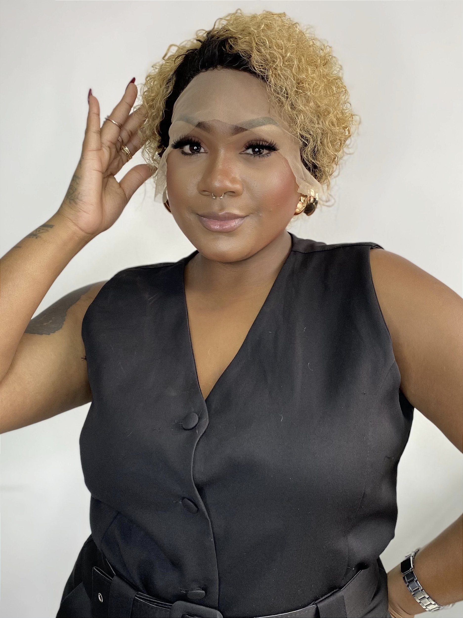 A Peruca Curta Cacheada Dalila 30cm Tela HD é perfeita para quem deseja um visual moderno, leve e extremamente natural. Seu comprimento curto realça os cachos definidos, trazendo volume e movimento na medida certa.